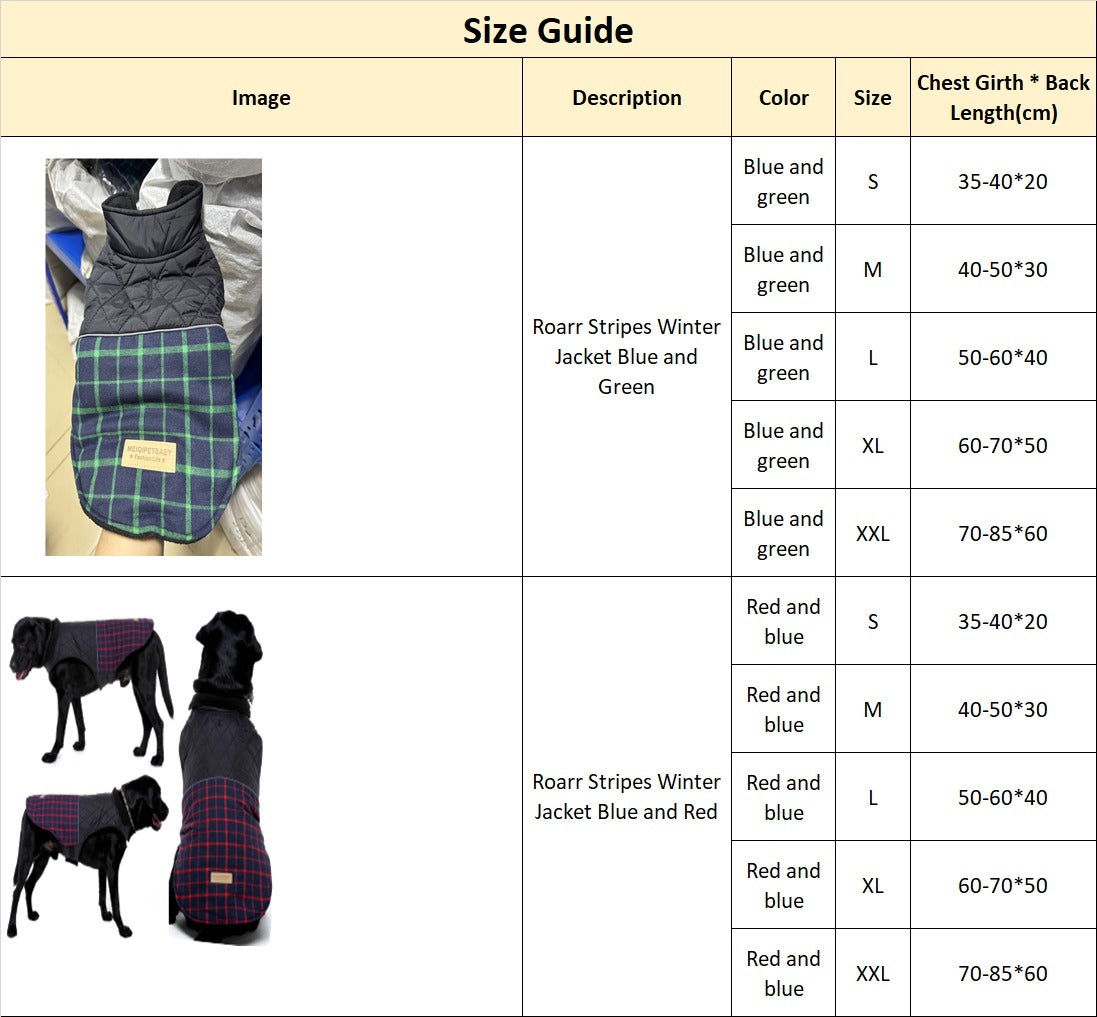 π¬ Wrap your dog in warmth and style with the Roarr Stripes Winter Jacket β where cozy meets classy!